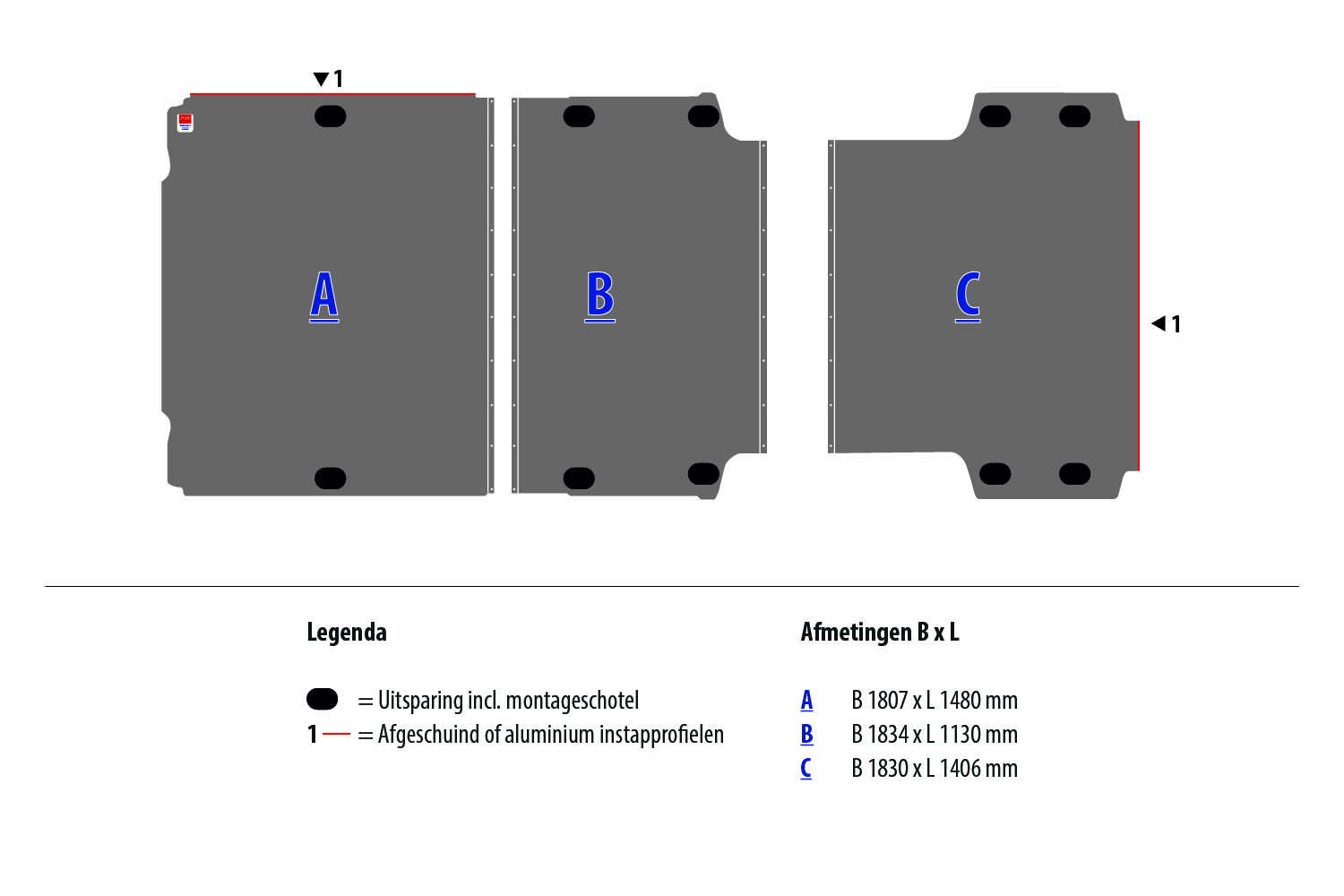 Vloerplaat 12 mm grijs tbv BOXER/JUMPER/MOVANO/DUCATO L4 FWD (wielbasis 4035XL) aantal